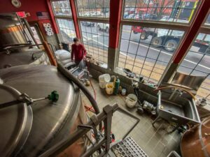 The Pub Dog Brewing Company is a commercial brewery that produces beer, hard seltzer, and ciders for sale at three Pub Dog locations and on contract for other breweries. The Westminster location is a full-service pub that features draft beer products plus pizza, wine, liquor, and non-alcoholic beverages. Ninety percent of the products that the brewery makes are beer and about 90 percent of that is also sold on draft at one of the locations. The full-service pub and full bar are available to diners, non-beer drinkers and non-drinkers.