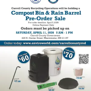 Carroll County Recycling Operations is holding its annual compost bin and rain barrel sale. Orders must be placed and paid online at enviroworld.com/carrollcountymd by April 5, 2026. Customers must be prepared to pick up orders on Saturday, April 11, 2026, between 8 a.m. – 1 p.m. If you cannot pick up during this time, we suggest […]