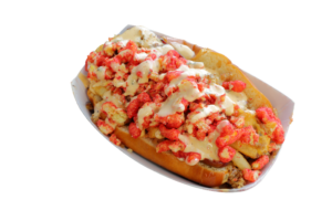 Weatherholtz loves getting creative and lets his team come up with unique options. “If it’s a hit with the guests, it just might go on the menu,” he said. For instance, the Flaming Chee Dog is one of the wildest choices: a certified Angus beef dog, split-cooked, stuffed with French fries, smothered in queso, sprinkled with bacon crumbles, crushed Flaming Hot Cheetos, and finished off with a drizzle of chipotle ranch, all nestled inside a toasted bun. All those crunchy toppings beautifully complement the gooey cheese and juicy beef; just be sure to ask for some extra napkins with this thing.