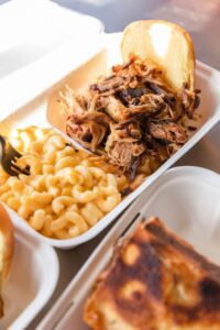 Beyond the pulled pork, Our Meat Your Face BBQ also prepares pulled chicken as well as smoked beef, wings and turkey for the ultimate barbecue meat feast. Sides, too, reflect an emphasis on bold flavor profiles, with dishes such as barbecue beans and crab macaroni and cheese.