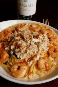 “It’s one of our entrees we’ve been featuring for nine years now. It’s got a lot of Maryland flair to it,” Cataldo said. The dish combines sauteed shrimp and jumbo lump crabmeat with accents of tomatoes, garlic, spinach and Old Bay seasoning. These ingredients get tossed in a white wine and garlic cream sauce and served over linguine.