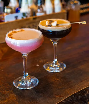 The Espresso Martini is a favorite among regulars at The Liquid Library. Its creamy tones of vanilla vodka complement the flavor punch of Grind Espresso Liqueur and fresh espresso, with a toasted marshmallow garnish to boot. The Hollywood combines pear puree, lime juice, simple syrup, egg white, fresh strawberries, a dash of bitters, and Caravedo Pisco Puro.